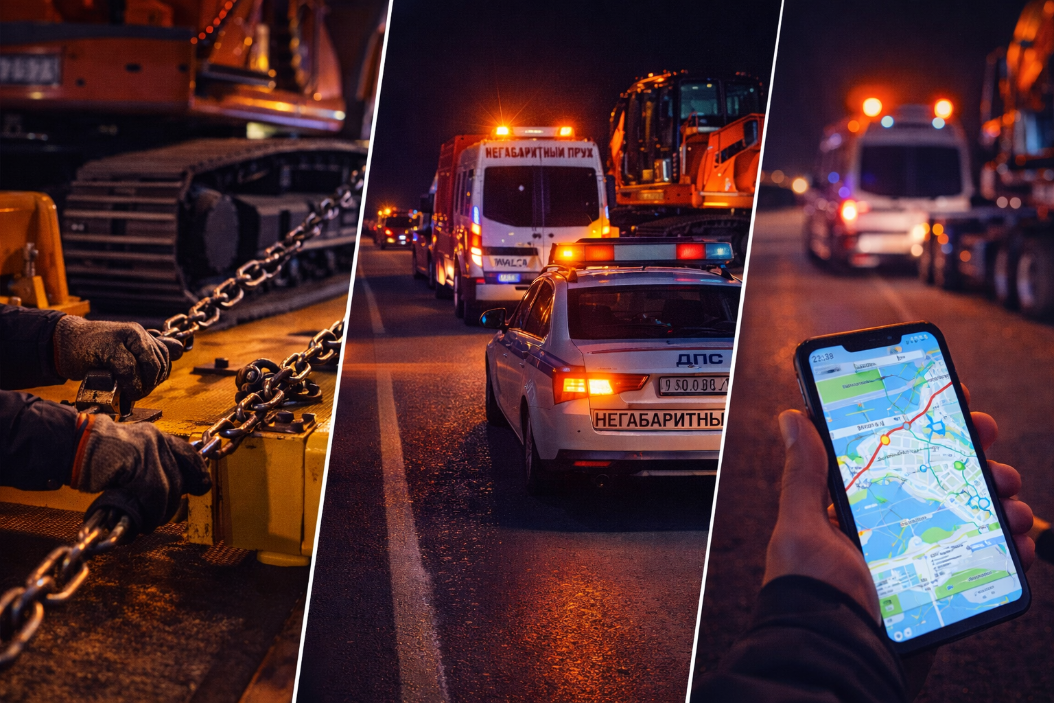 Берём на себя все согласования, разрешения и сопровождение. Используем профессиональный крепёж, обеспечиваем мониторинг груза и постоянную связь с экипажем на маршруте. Сопровождение груза сотрудниками ГИБДД